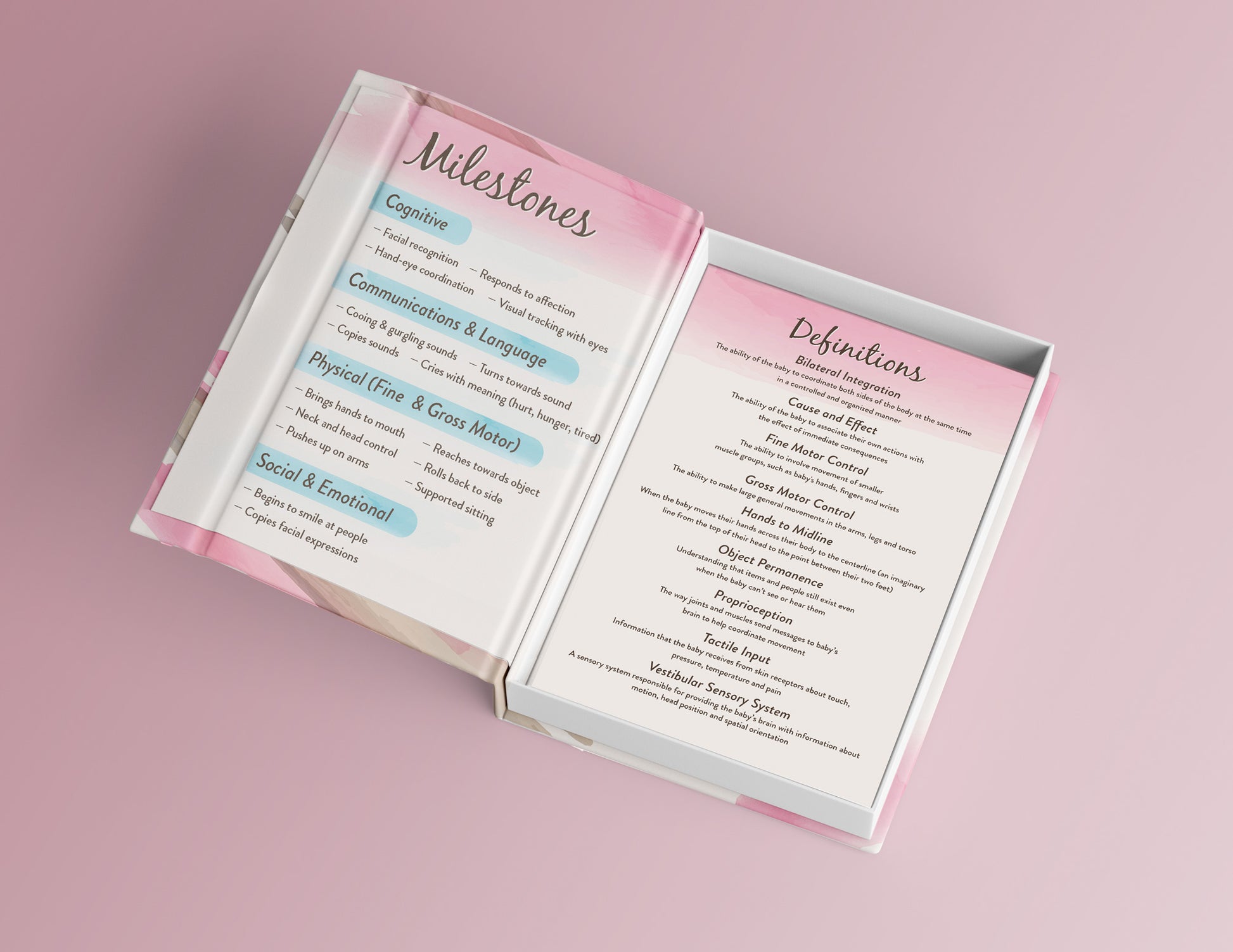 - 30 interactive & educational activity cards approved by pediatric specialists for ages 0-4 months